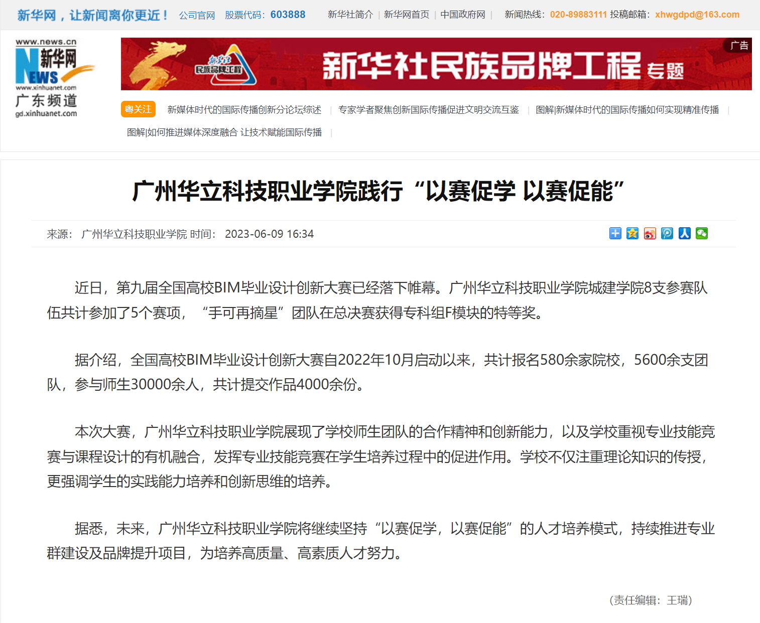 社會(huì)影響擴(kuò)大。2023年11月,新當(dāng)選“全國建筑機(jī)器人產(chǎn)教融合共同體”和“全國土木工程雙碳行業(yè)產(chǎn)教融合共同體”理事單位、“云浮市建設(shè)咨詢行業(yè)協(xié)會(huì)”名譽(yù)會(huì)員單位。2023年10月,成功承辦IEEE工業(yè)電子學(xué)會(huì)主辦的第49屆年會(huì)“智能建筑數(shù)字孿生技術(shù)的最新應(yīng)用線上會(huì)議”,獲得了國內(nèi)外專家學(xué)者、工程師和行業(yè)企業(yè)一致認(rèn)可。近三年,學(xué)生參加技能競(jìng)賽的優(yōu)秀表現(xiàn),先后被人民日?qǐng)?bào)、新華網(wǎng)、學(xué)習(xí)強(qiáng)國等主流媒體報(bào)道。