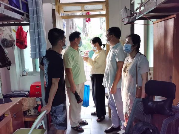當天下午,學院領導和輔導員到學生宿舍走訪慰問返校學生,與同學們面對面交談,詳細詢問返校過程、居家在線及返校后的學習情況,提醒學生注意疫情防控,了解學生在校期間的實際需求,如有任何需要都可以聯(lián)系學院輔導員尋求幫助。強調學生要合理安排作息時間,以良好的精神面貌迎接即將到來的實習生活。