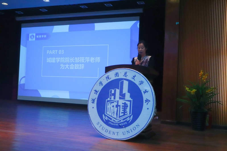 再由城建學(xué)院團(tuán)總支學(xué)生會實(shí)習(xí)生代表蔡恒杰同學(xué)進(jìn)行發(fā)言,他講大學(xué)是人生最重要的階段,需要互相團(tuán)結(jié),目標(biāo)堅(jiān)定,樹立理想與抱負(fù),去描述我們無悔的青春。