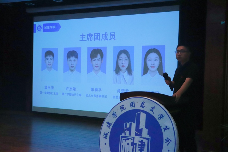接下來由城建學(xué)院團(tuán)總支書記朱志豪老師宣讀第十一屆學(xué)生會負(fù)責(zé)人名單,名單分別有溫里佳等5位主席團(tuán)成員,郭學(xué)鵬等33位部門負(fù)責(zé)人。