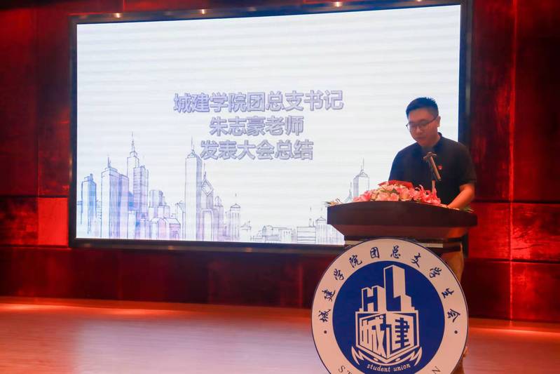 再由城建學(xué)院團(tuán)總支學(xué)生會實(shí)習(xí)生代表莊博睿同學(xué)進(jìn)行發(fā)言,他講大學(xué)是人生最重要的階段,需要互相團(tuán)結(jié),目標(biāo)堅定,樹立理想與抱負(fù),去描述我們無悔的青春。