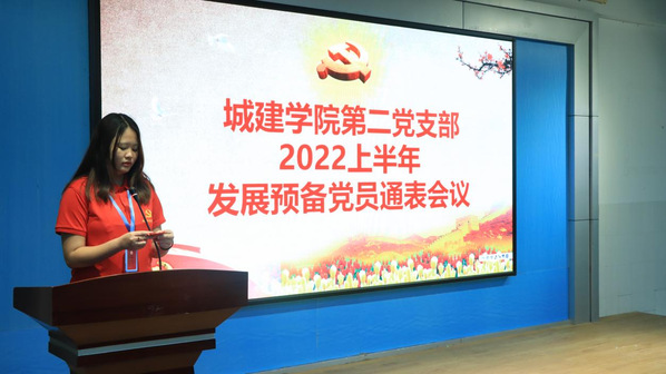 參加本次通表大會的人員有:城建學(xué)院黨總支書記李桂林同志、城建學(xué)院第二黨支部書記陳權(quán)豐同志、城建學(xué)院黨總支(宣傳)委員李貝貝同志、城建學(xué)院第二黨支部紀(jì)檢委員李丹同志、城建學(xué)院學(xué)生黨員代表和城建學(xué)院黨建小組成員。