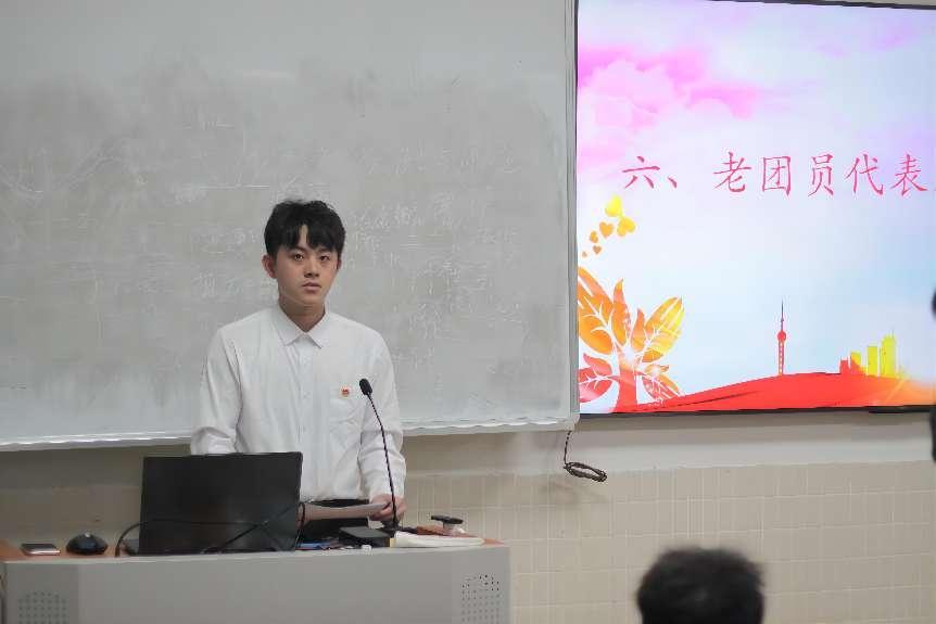 鄭冰旋同學作為老團員代表進行發(fā)言,他代表老團員對新團員提出了幾點建議:“第一,政治上要立場堅定;第二,品德上要光明磊落;第三,工作上要積極勤奮;第四,作風上要扎扎實實”。