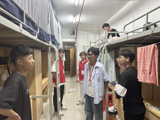 在走訪(fǎng)宿舍過(guò)程中,領(lǐng)導(dǎo)們給新生帶來(lái)了滿(mǎn)滿(mǎn)的關(guān)懷與溫暖,親切詢(xún)問(wèn)同學(xué)們對(duì)宿舍的滿(mǎn)意度,空調(diào)效果如何,生活是否習(xí)慣,學(xué)校的飯對(duì)不對(duì)口味,有沒(méi)有給家里報(bào)平安了。同時(shí)提醒新生要注意校園安全、預(yù)防網(wǎng)絡(luò)詐騙,并指出,學(xué)校是同學(xué)們溫暖的家,若有困難和需求,第一時(shí)間尋求老師的幫助,我們都會(huì)盡全力為大家排憂(yōu)解難。