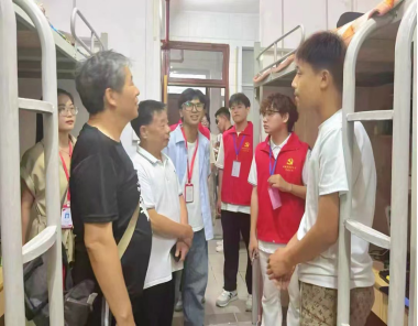 在走訪宿舍過程中,領(lǐng)導(dǎo)們給新生帶來了滿滿的關(guān)懷與溫暖,親切詢問同學(xué)們對宿舍的滿意度,空調(diào)效果如何,生活是否習(xí)慣,學(xué)校的飯對不對口味,有沒有給家里報平安了。同時提醒新生要注意校園安全、預(yù)防網(wǎng)絡(luò)詐騙,并指出,學(xué)校是同學(xué)們溫暖的家,若有困難和需求,第一時間尋求老師的幫助,我們都會盡全力為大家排憂解難。