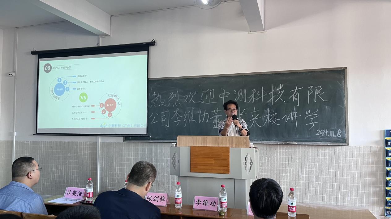 為全面貫徹落實新職業(yè)教育法“產(chǎn)教融合、校企合作”的精神,積極探索“校內(nèi)+校外”產(chǎn)教融合的人才培養(yǎng)新模式,城建學院于11月8日下午15:30在云浮校區(qū)第一教學樓505課室開展《測繪技能型人才行業(yè)定位及能力發(fā)展》專題講座,廣州華立科技職業(yè)學院校長助理張劍鋒、城建學學院院長陳積光、產(chǎn)教融合辦公室副主任甘英浩、相關(guān)專業(yè)老師及150多名學生出席參加,由張劍鋒主持。此次講座在校企深入合作基礎(chǔ)上邀請了廣州中測科技有限公司董事長李維功作為主講,同時他也是一名高級工程師和國家注冊測繪師。