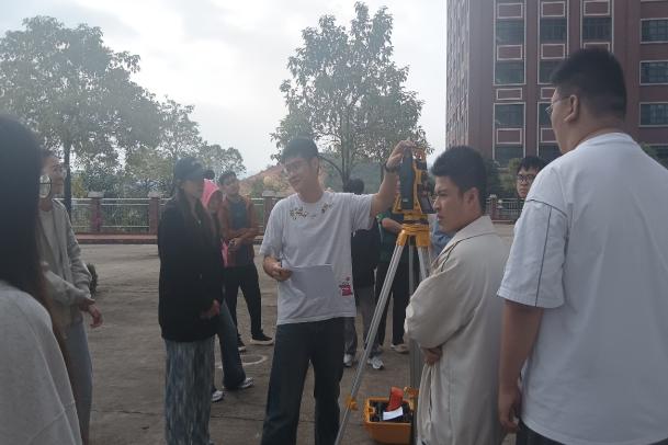 全站儀是全站型電子速測儀的簡稱,是一種集光、機、電為一體的高精密測量儀器,應(yīng)用范圍非常廣泛,包括控制測量、細(xì)部測量、施工放樣和變形觀測等方面,主要用于地面大型建筑和地下隧道施工等精密工程測量或變形監(jiān)測。歐陽同學(xué)就全站儀的安裝、如何設(shè)置測站和后視點、如何進(jìn)行角度測量、距離測量和坐標(biāo)測量、數(shù)據(jù)存儲與傳輸?shù)冗M(jìn)行示范教學(xué),就測量過程中應(yīng)避免直接對準(zhǔn)太陽、防止震動及儀器安全做了要求。