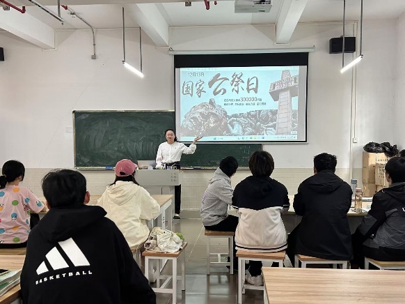 國行公祭,法立典章。鑄茲寶鼎,祀我國殤。教師黨支部書記劉昊茹給24級地礦專業(yè)學(xué)生講述抗日戰(zhàn)爭時期的英雄事跡、南京大屠殺的悲慘史實,以及新中國成立以來取得的輝煌成就,讓在場的每一位同學(xué)都深受觸動。教師黨支部組織統(tǒng)戰(zhàn)委員、輔導(dǎo)員楊嘉樺給23級建工專業(yè)學(xué)生召開主題班會,他表示,中國人只有發(fā)光發(fā)熱,砥礪前行努力振奮中華,民族復(fù)興才能守護那些“不能忘卻的記憶”,愿以吾輩之青春,捍衛(wèi)盛世之中華!羅遠明、馬芳、楊艷、鄭建勛、邵婷、陳思瑜、劉鋮聰?shù)冉處煟谜n堂三分鐘肅立默哀,緬懷革命先烈,悼念南京大屠殺中的無辜死難者以及為中國人民抗日戰(zhàn)爭勝利獻出生命的英雄。