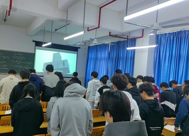 上午10∶01—10∶02防空警報(bào)拉響,警鐘長(zhǎng)鳴,我院正在上課的教師組織學(xué)生起立,師生共同默哀;