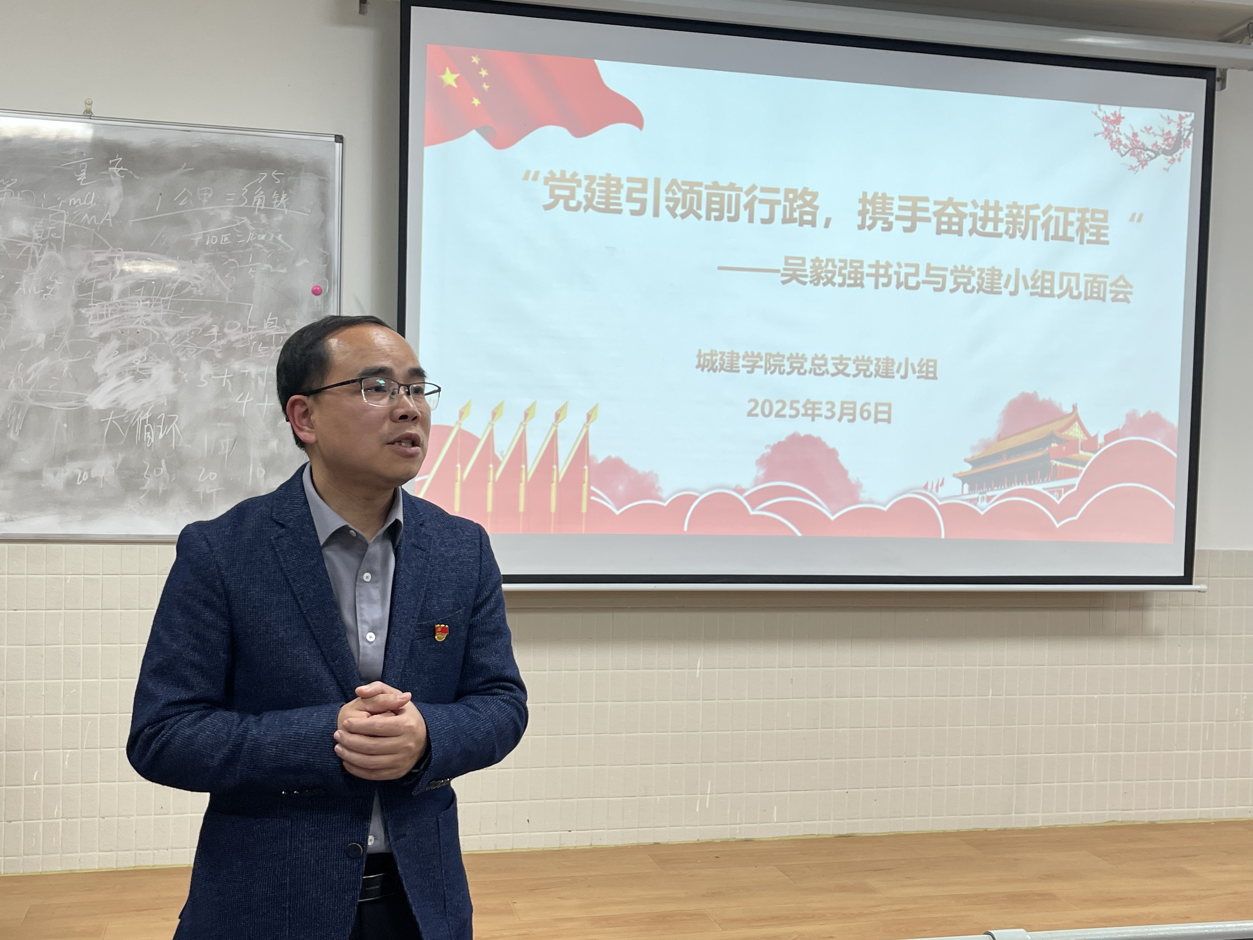 2025年3月6日晚上,城建學(xué)院黨總支黨建小組在2教404召開了“黨建引領(lǐng)前行路,攜手奮進新征程”——吳毅強書記與黨建小組見面會。參會人員有城建學(xué)院黨總支書記吳毅強同志、黨總支專職副書記兼學(xué)生黨支部書記郭君蘭同志及黨建小組全體成員。本次會議由黨總支組織員陳華林同志主持。