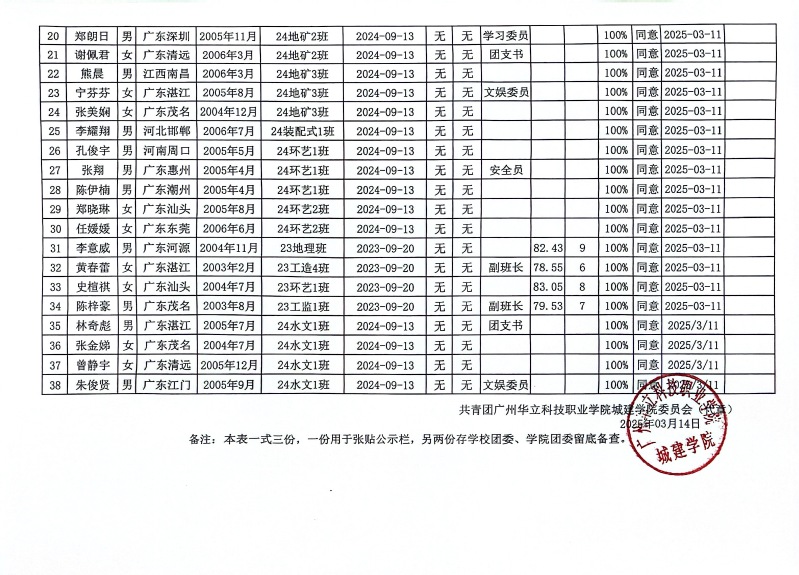 廣州華立科技職業(yè)學(xué)院城建學(xué)院確定優(yōu)秀團(tuán)員作黨的培養(yǎng)對象公示表