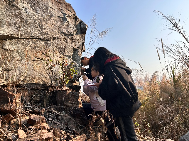 云浮東站附近路邊地質(zhì)體受風化作用、地面流水地質(zhì)作用影響呈現(xiàn)典型地貌特征,在此處帶領學生分析巖性、識別風化地質(zhì)作用及其產(chǎn)物、掌握地面流水地質(zhì)作用、流水沖刷的洪溝跟洪積物的特點。還需識別節(jié)理、小斷裂構造、斷裂帶、破裂面、巖石脈,以及GPS定點、使用羅盤測產(chǎn)狀、采集巖石樣本等基本野外技能。