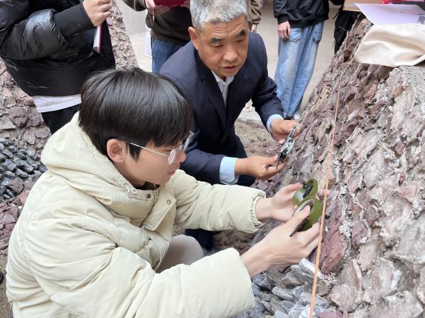 在實(shí)際操作環(huán)節(jié),學(xué)生以組為單位,按照崗位(前后測手、分層員、記錄員、產(chǎn)狀測量員、采樣員)扮演角色,積極參與到實(shí)踐中,他們手持地質(zhì)錘、羅盤、放大鏡、鋼尺等工具,認(rèn)真觀察探槽壁上的巖石特征、地層分界線以及各種地質(zhì)構(gòu)造現(xiàn)象,詳細(xì)記錄各項(xiàng)數(shù)據(jù),并嘗試?yán)L制編錄圖。遇到問題時,學(xué)生們主動向教師請教,教師則耐心地為學(xué)生答疑解惑,給予針對性的指導(dǎo)和建議,確保每個學(xué)生都能掌握正確的操作方法。