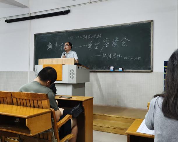 為進一步搭建師生交流平臺,精準把握學生需求,優(yōu)化教育教學管理及服務育人水平。城建學院全體教師與各教研室于2025年4月28日共同開展師生座談會。出席座談會的有城建學院院長徐耀鑒,黨總支書記、副院長吳毅強,黨總支副書記、學管副主任郭君蘭,行政人事副主任雷愛婷、教科研副主任喬亮、教研室主任、相關專業(yè)教師、輔導員及各班學生代表參加。