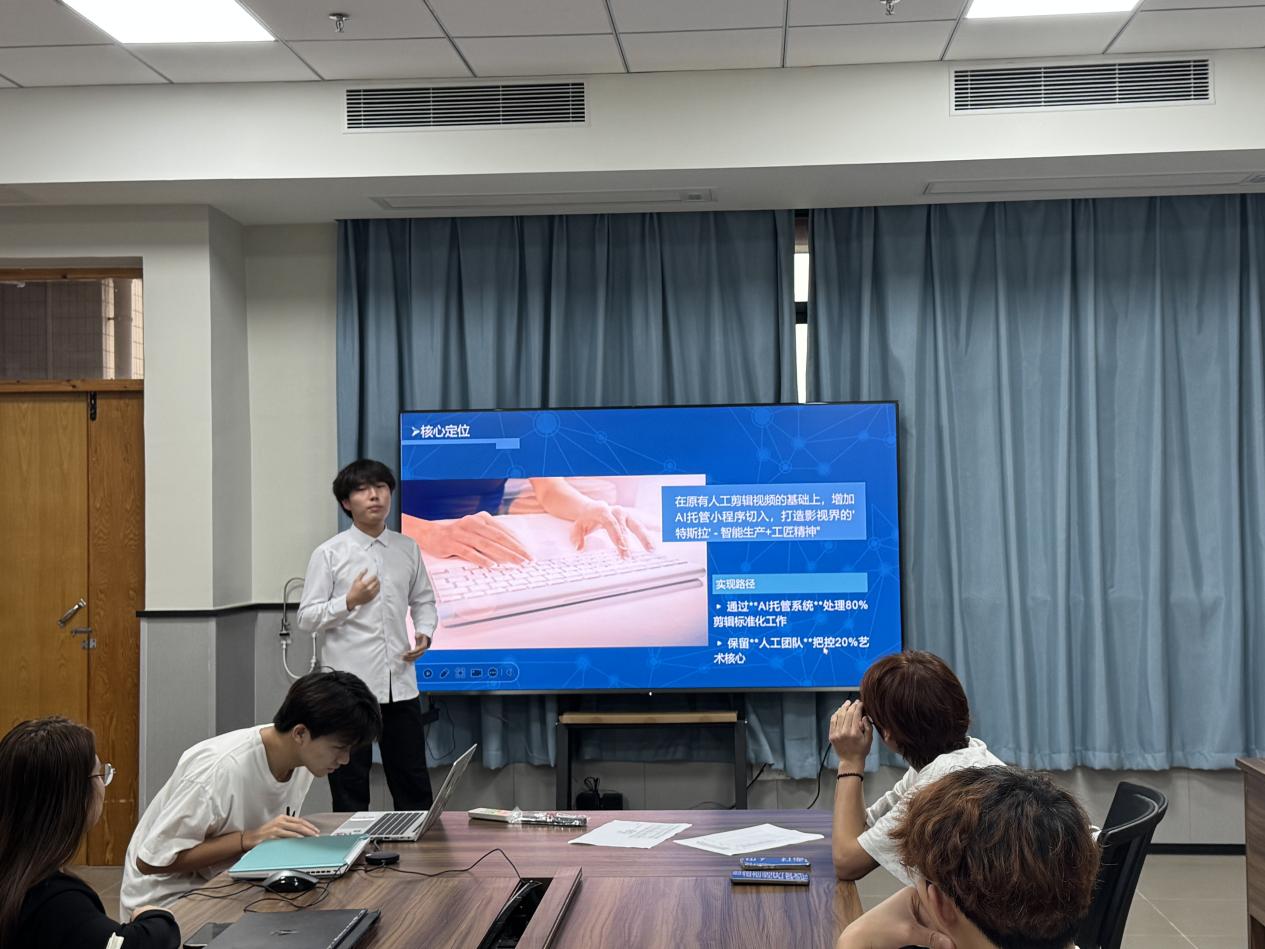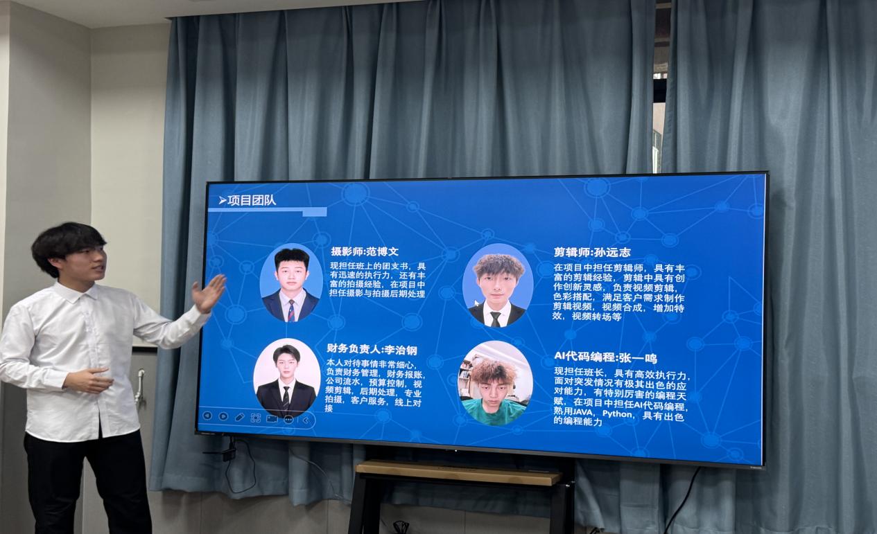在項(xiàng)目展示環(huán)節(jié),"光影躍遷"團(tuán)隊(duì)負(fù)責(zé)人董自雄以AI智能剪輯為切入點(diǎn),通過全平臺分發(fā)系統(tǒng)。該項(xiàng)目憑借"AI粗剪+人工精修"的雙核創(chuàng)新架構(gòu),提出剪輯市場需求的解決方案。