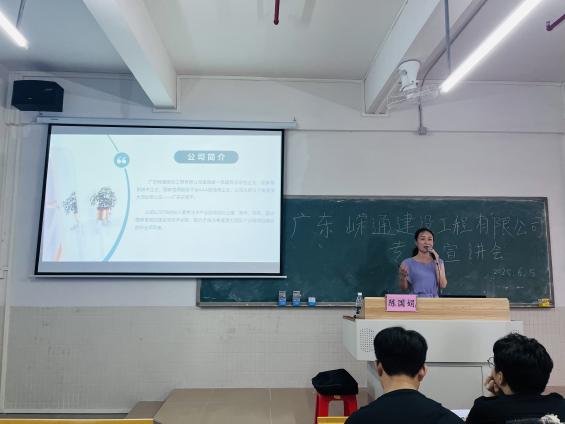 為搭建校企人才溝通合作橋梁,助力學生搭建與優(yōu)質企業(yè)對接的平臺,明確職業(yè)方向,順利開啟實習征程,2025 6 5 日,廣東嶸通建設有限公司陳國娟主任走進華立職院城建學院,在云浮校區(qū)舉辦了一場精彩的專場宣講會。作為一家在行業(yè)內頗具影響力的企業(yè),嶸通建設已連續(xù)多年在城建學院開展進校講座與招聘活動,雙方保持著長期且穩(wěn)定的合作關系。