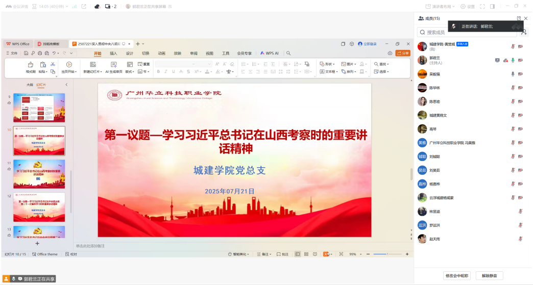 2025年7月21日,城建學(xué)院黨總支召開深入貫徹中央八項規(guī)定精神學(xué)習(xí)教育推進會。會議以線上形式舉行,通過集中學(xué)習(xí)、案例剖析、工作部署等環(huán)節(jié),推動全體師生黨員深化思想認(rèn)識、強化行動自覺。