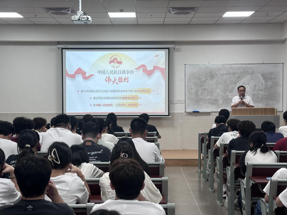 2025年10月14日,城建學(xué)院黨總支書記吳毅強在第二教學(xué)樓408教室,為24級、25級各專業(yè)學(xué)生講授以“傳承偉大抗戰(zhàn)精神 凝聚偉大復(fù)興力量”為主題的“思政第一課”,引導(dǎo)青年學(xué)子從抗戰(zhàn)歷史中汲取精神力量,錨定民族復(fù)興使命。