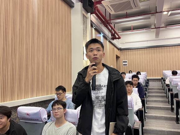 隨后,盧賽虎部長以提問引發(fā)同學(xué)們思考:“大家認(rèn)為‘礦’是什么?生活中見過哪些礦?”問題拋出后,現(xiàn)場學(xué)子踴躍舉手發(fā)言?!拔乙娺^鐵礦,是黑色的石塊!”“煤炭算不算礦?”面對同學(xué)們的回答,盧部長逐一點評,從專業(yè)角度給出“礦”的定義,并列舉了金屬礦、非金屬礦、能源礦等常見礦產(chǎn)類型,結(jié)合廣東本地的礦產(chǎn)資源分布實例,讓同學(xué)們對“礦”有了系統(tǒng)認(rèn)知?;又?,同學(xué)們積極提問,從行業(yè)就業(yè)前景到專業(yè)學(xué)習(xí)難點,盧部長耐心解答,現(xiàn)場氛圍熱烈,掌聲不斷。