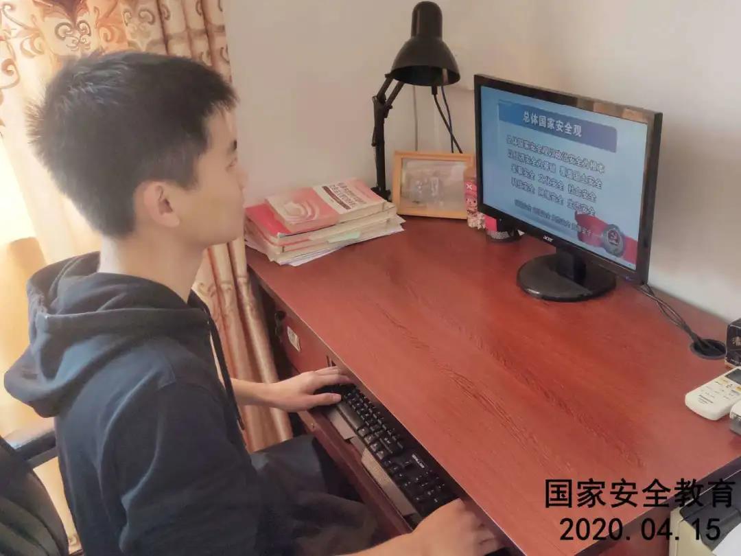 4月14日,線上學(xué)習(xí)之后,各班通過微信群通知學(xué)生登錄安全教育平臺,網(wǎng)上收看全民安全教育專題,了解相關(guān)的國家法律法規(guī);視頻學(xué)習(xí)之后,學(xué)生自主完成之后的題目,強(qiáng)化國家意識,提升安全素養(yǎng),掌握必要的防范之策。