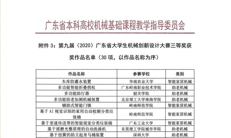我校電力與智能制造學(xué)院作品——助老健身爬樓機(jī),參加2020年9月21日至9月26日第九屆全國(guó)大學(xué)生機(jī)械創(chuàng)新設(shè)計(jì)大賽(廣東賽區(qū))的比賽中獲得省級(jí)三等獎(jiǎng)。