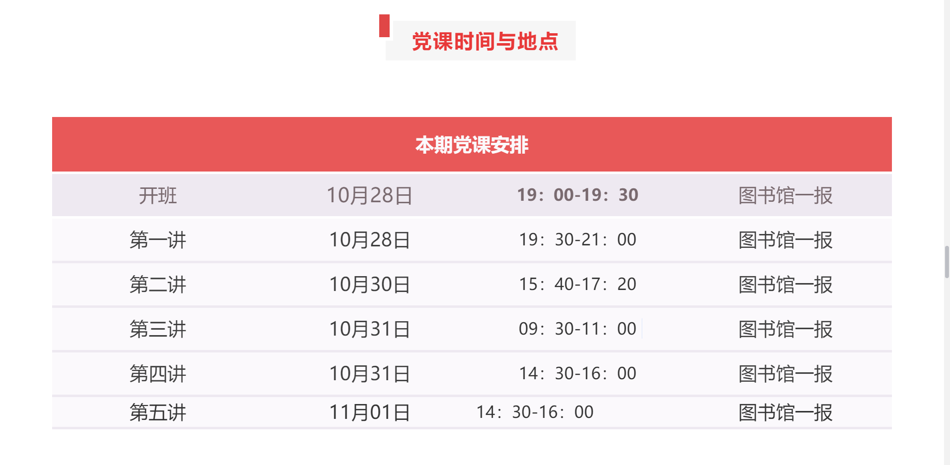 2. 每次黨課需提前15分鐘進(jìn)場,到點準(zhǔn)時開始登記遲到;