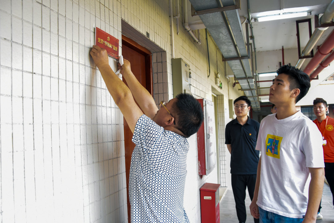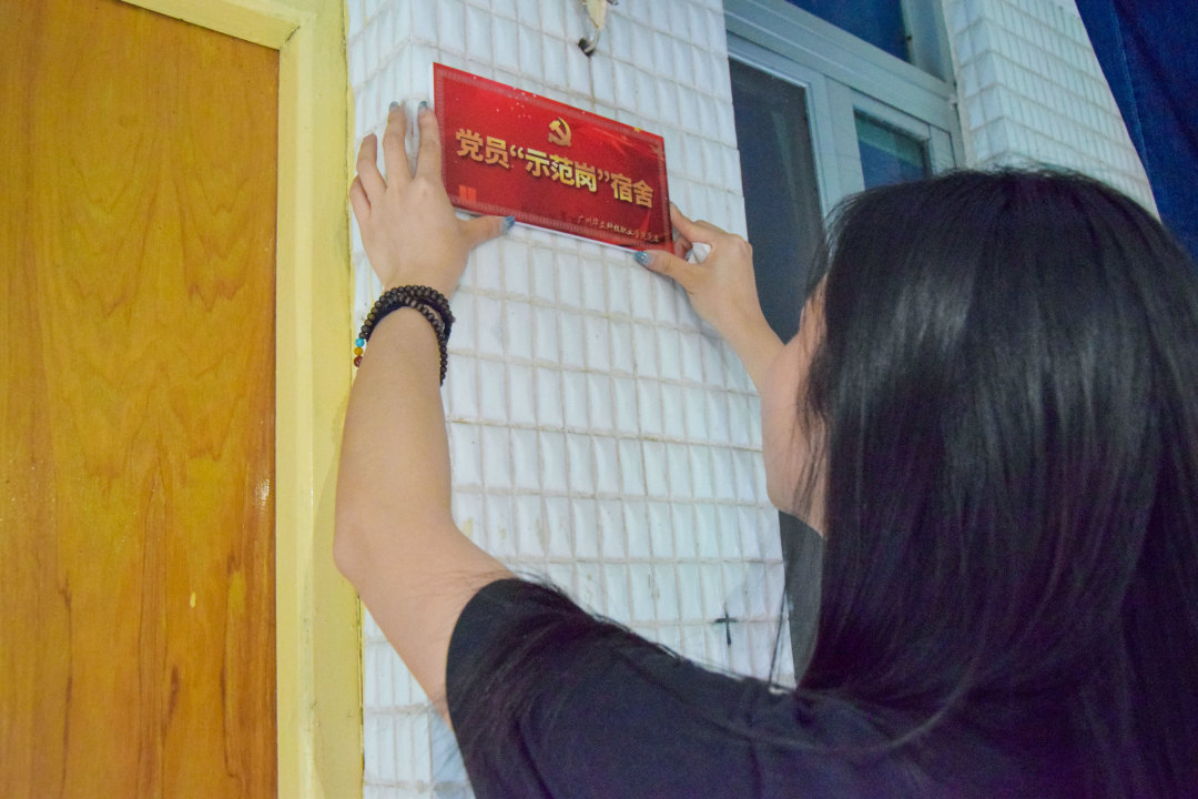 走訪中發(fā)現(xiàn),我們的學生黨員宿舍都保持得干凈整潔,宿舍物品也都擺放得井然有序,宿舍環(huán)境衛(wèi)生讓人感覺溫馨舒適,受到了學院領導們的一致好評。這也體現(xiàn)出我們學院學生黨員對自我的嚴格要求與先鋒模范作用。隨后,支部領導親自為學生黨員宿舍掛牌。