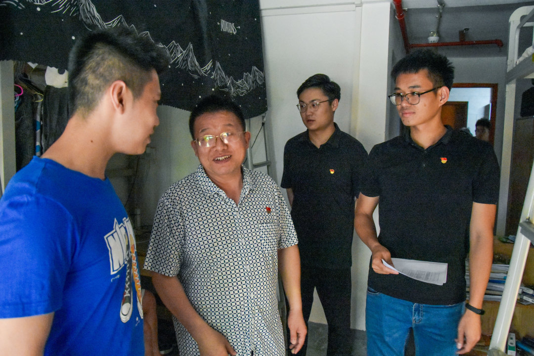 走訪學生黨員宿舍過程中,曾祥彪書記與學生黨員進行了面對面的交流,詢問并了解了他們近期生活與學習情況,對學生黨員提出了要一直以優(yōu)秀黨員的標準嚴格要求自己,在學習與生活中要時刻謹記黨員身份,以身作則,樹立標桿,率先示范,展現(xiàn)黨員形象的建議。并指出平時對宿舍成員的學習和生活也要進行幫助,督促同學們共同進步,努力營造宿舍積極向上的學習氛圍,創(chuàng)建文明和諧的學習、生活環(huán)境。