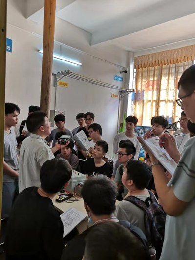 特種電工作業(yè)操作證是電力專業(yè)學生對口就業(yè)的必備技能證,為了能讓學生更好的做到學以致用,理論結合實際操作,熟悉特種作業(yè)時用電設備安全和人身安全,以便今后在就業(yè)時有更寬廣的就業(yè)渠道的提升空間。電力與智能制造學院云浮校區(qū)第一期電工考證培訓于2021年5月15日正式開班,廣州校區(qū)派出了3名考評員老師和云浮校區(qū)機電系老師及輔導員組成了教師團隊在云城區(qū)華眾考點組織教學培訓。