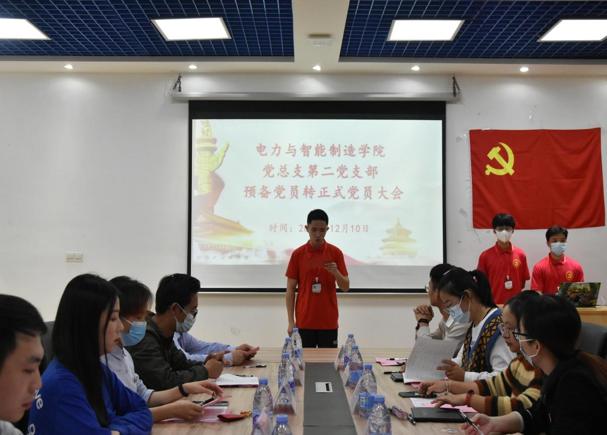 2021年12月10日下午,電力與智能制造學(xué)院黨總支在科技樓五樓召開了2021年下半年預(yù)備黨員轉(zhuǎn)正大會,大會討論孫瑜聆等13位預(yù)備黨員轉(zhuǎn)為中共正式黨員事宜。