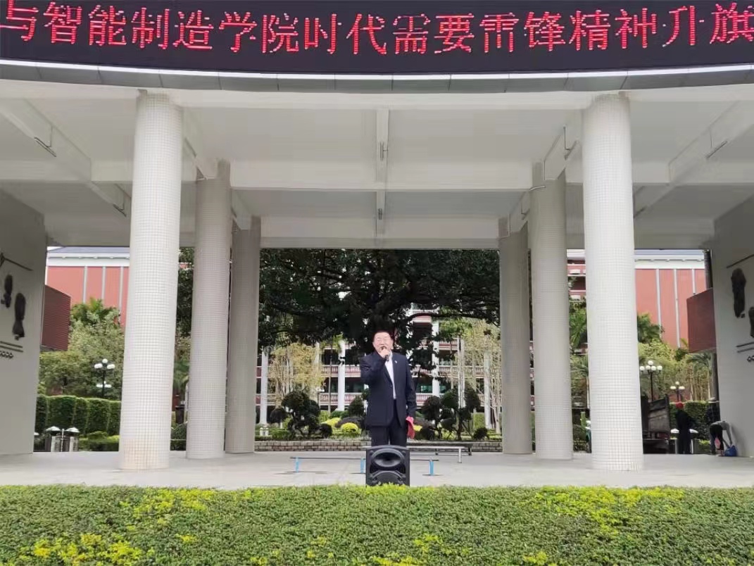 本次升旗儀式由電力學院曾祥彪副院長發(fā)言;曾副院長說到:“雷鋒的一生,是把有限的生命投入到無限的為人民服務(wù)之中的一生。在新時代中國,在共產(chǎn)黨領(lǐng)導(dǎo)下涌現(xiàn)出了一批又一批“新雷鋒”。一輩子忠于黨、全心全意為群眾謀利益的楊善洲;創(chuàng)辦免費女子高中,為落后山區(qū)的教育事業(yè)默默奉獻的張桂梅;不顧個人安危而積極投身抗疫前線的醫(yī)護人員;為北京冬奧會辛勤付出的2.7萬名志愿者們……