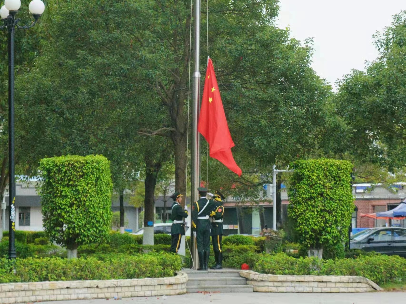 隨著《義勇軍進行曲》的響起,五星紅旗在微風中冉冉升起。在場學生莊嚴肅穆,以飽滿的精神狀態(tài)向祖國致敬。