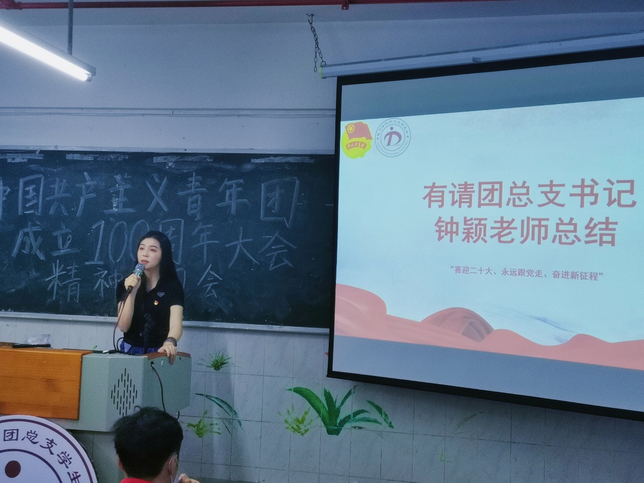會議尾聲,學(xué)院團(tuán)總支書記鐘穎老師指出:青年的命運從來都與時代緊密相連,歷經(jīng)百年征途,共青團(tuán)作為黨和國家與青年之間橋梁和紐帶,為黨培養(yǎng)了許多優(yōu)秀的助手和后備軍。