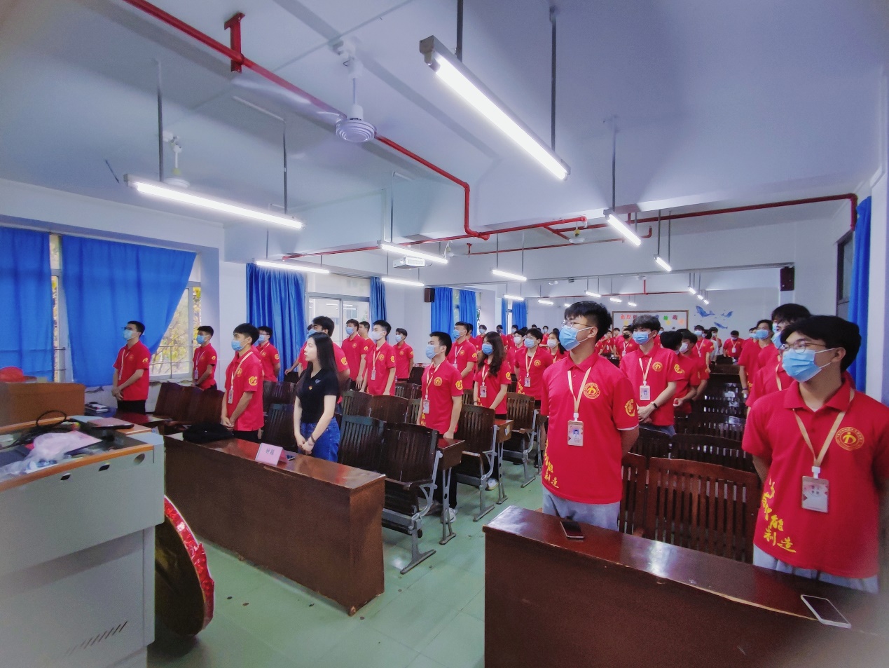當(dāng)熟悉的旋律響起時,每個人站得筆直,齊聲高唱共青團(tuán)團(tuán)歌《光榮啊,中國共青團(tuán)》。
