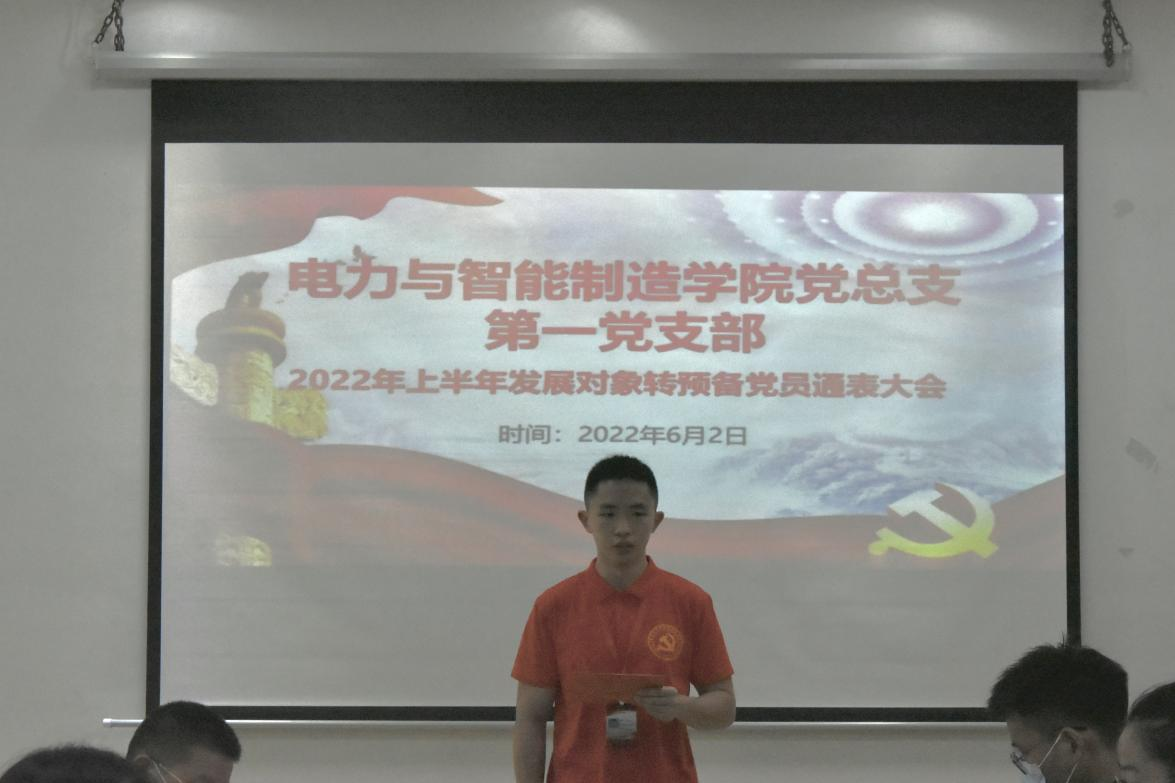電力與智能制造學(xué)院黨總支第一黨支部副書記劉杰同志發(fā)表講話,他首先對當(dāng)下的時事發(fā)表了看法,表揚了這次發(fā)展對象他們能夠在工作中,能刻苦鉆研業(yè)務(wù),同時努力學(xué)習(xí)政治理論和業(yè)務(wù)知識,認(rèn)真履行黨員義務(wù),堅持黨性鍛煉。