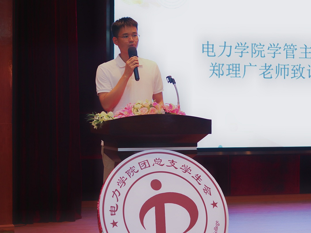大會第二項,電力與智能制造學(xué)院學(xué)管主任鄭理廣老師為此次大會致辭。