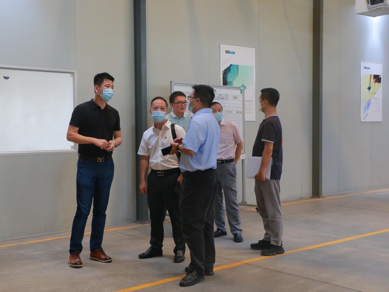 首先,東莞道元自動化技術有限公司總經理林銳通對陳書記一行的到來表示熱烈歡迎,隨后林總帶領陳書記一行人參觀研發(fā)部、生產車間等部門,一一介紹企業(yè)的研發(fā)團隊的規(guī)模、生產工藝流程和產品質量把控等。