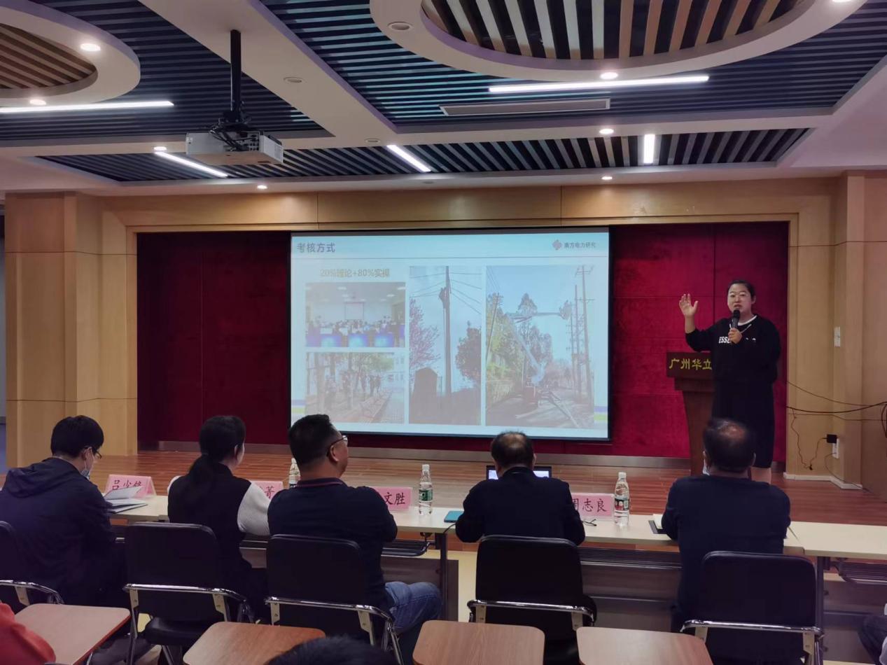 首先,校內(nèi)教學(xué)副主任劉杰對(duì)廣東南方電力科學(xué)研究院專家們的到來(lái)表示熱烈歡迎,并隆重介紹了廣東南方電力科學(xué)研究院各位專家。廣東南方電力科學(xué)研究院是廣東省科學(xué)技術(shù)廳批準(zhǔn)成立,主要從事電力科研,高新技術(shù)產(chǎn)品開發(fā)與應(yīng)用推廣,電力工程設(shè)計(jì)、安裝、試驗(yàn)、維護(hù)、檢修、節(jié)能技術(shù)改造等電力客戶服務(wù),以及電力職業(yè)培訓(xùn)、技能鑒定、職稱評(píng)定、繼續(xù)教育、人才測(cè)評(píng)、崗位培訓(xùn)等培訓(xùn)教育業(yè)務(wù)。目前廣東南方電力科學(xué)研究院有10千伏不停電作業(yè)、用戶側(cè)微電網(wǎng)工程應(yīng)用、電能交易區(qū)塊鏈應(yīng)用等三個(gè)職業(yè)技能等級(jí)標(biāo)準(zhǔn)和證書入選教育部1+X證書制度試點(diǎn)。