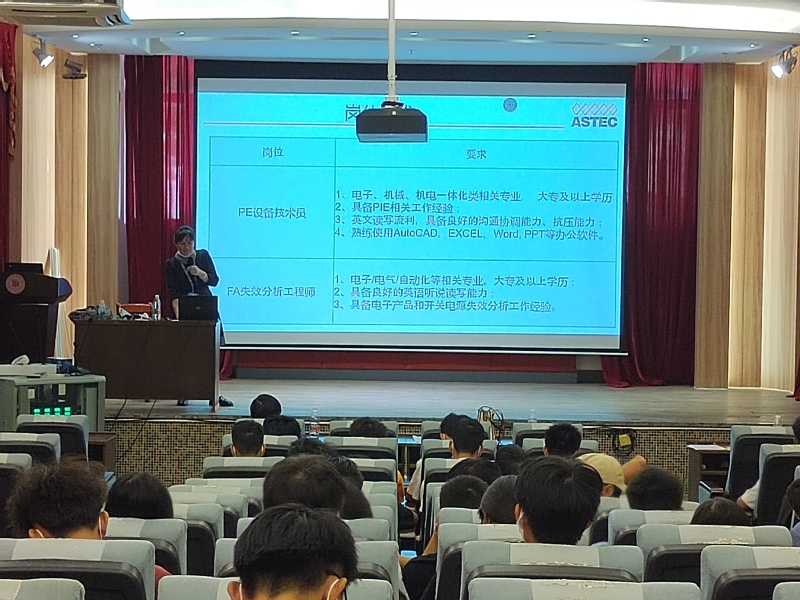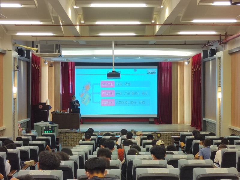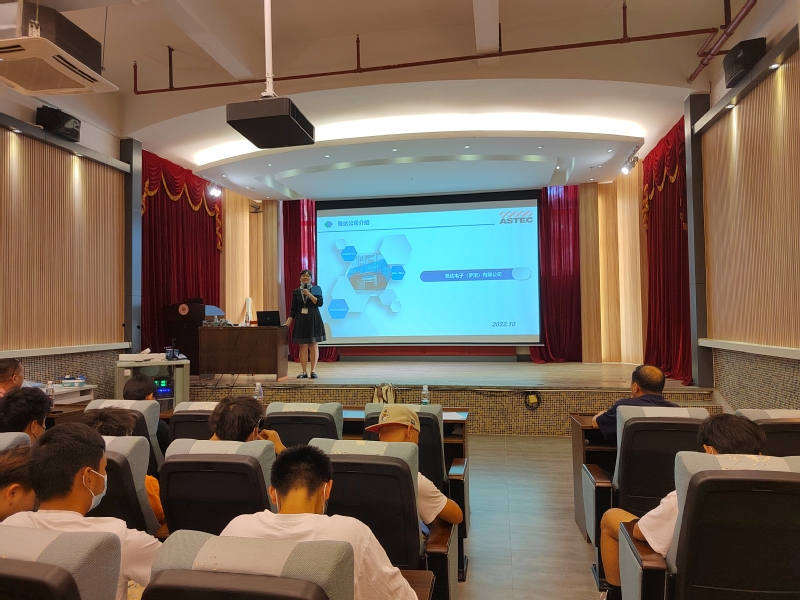 雅達品質部經理譚國立則詳細介紹了雅達公司的相關情況,并普及了現有的產品涉及的技術和工藝,并且主要說明了制造這些產品所需的人才技術。在場的學生在提問環(huán)節(jié)暢所欲言,譚經理亦一一解答,讓學生們更加清楚得了解到自己的專業(yè)可以用到哪些領域。