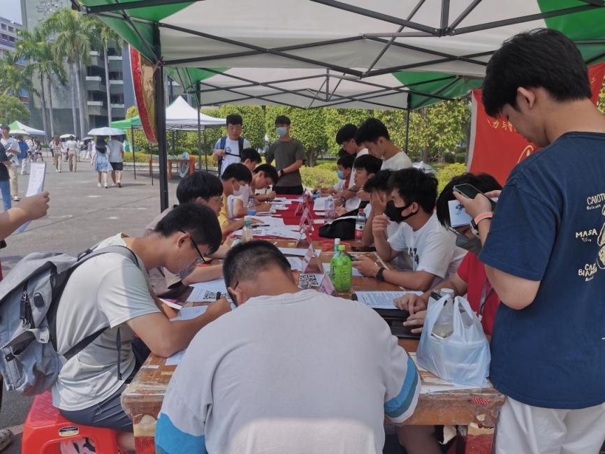 隨著下課的鈴聲響起,越來越多的大一同學踴躍的來到攤前詢問報名。