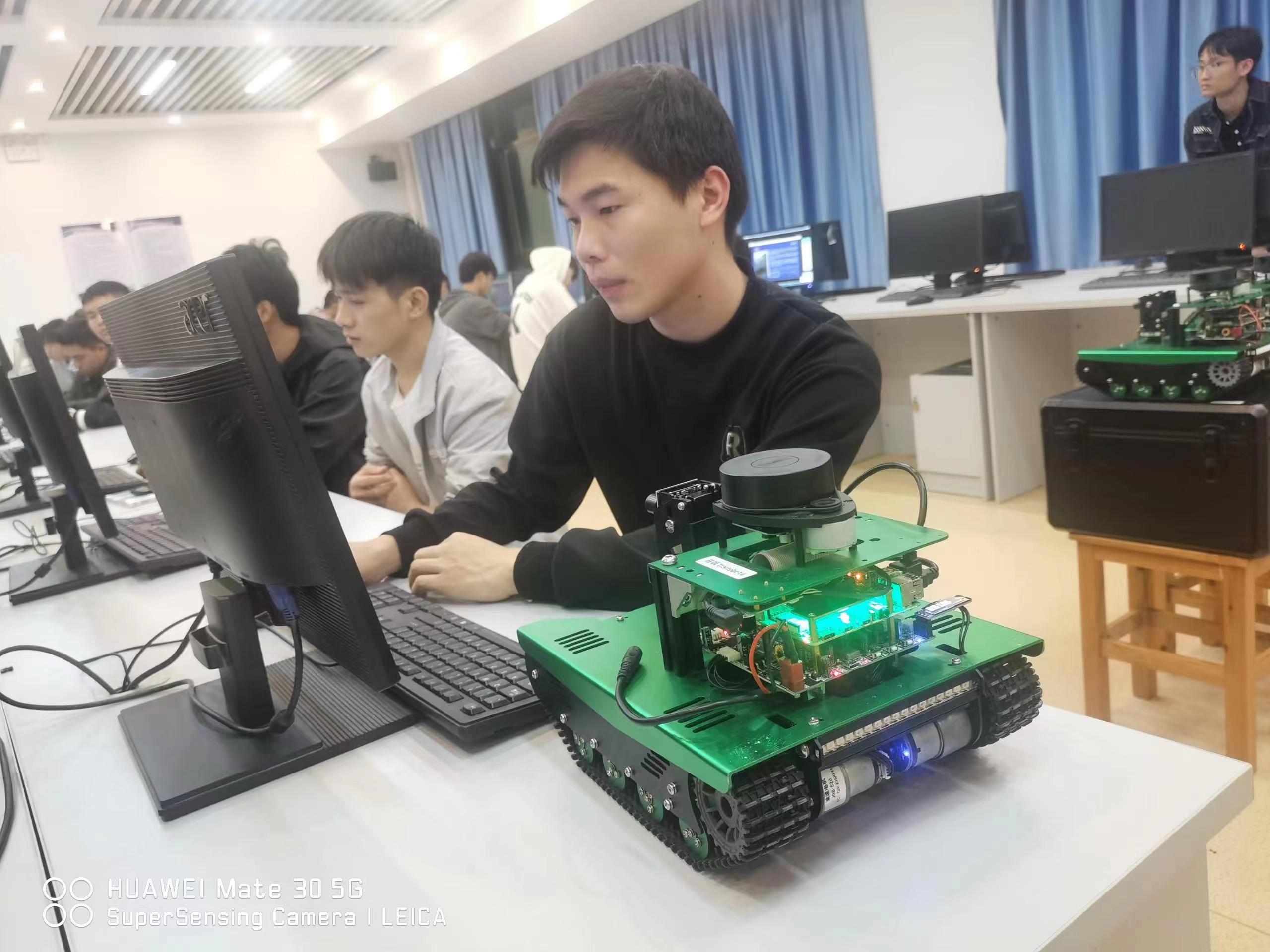 如火如荼地發(fā)展的智能網(wǎng)聯(lián)汽車給汽車、計算機等多種相關(guān)產(chǎn)業(yè),開辟了一塊又一塊的大蛋糕。廣州易颯科技有限公司有意向與我校協(xié)作開辦智能網(wǎng)聯(lián)汽車課程。2023年2月21日下午,在科技樓5樓給學生上體驗課。