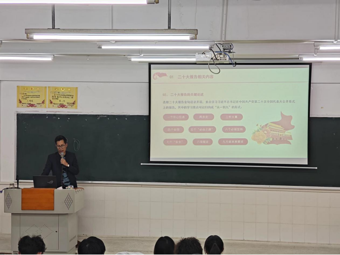2023年3月1日晚上在圖書館501教室,電力與智能制造學院黨總支書記孫令真同志,以“青春獻禮二十大、強國有我新征程”為主題,為電力與智能制造學院入黨積極分子以及2022級電力1、2、3、班的全體學生講授思政第一課。