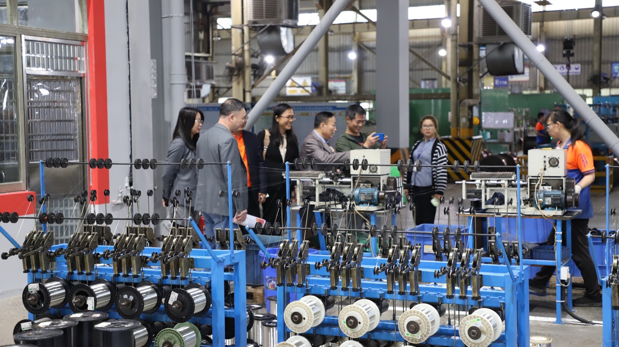 為了進(jìn)一步了解電線電纜的生產(chǎn)過程,王秀敏院長一行人參觀了電纜的接線生產(chǎn)車間等,對(duì)電線電纜生產(chǎn)設(shè)備、生產(chǎn)工藝、質(zhì)量檢驗(yàn)和崗位需求有了更深的了解。
