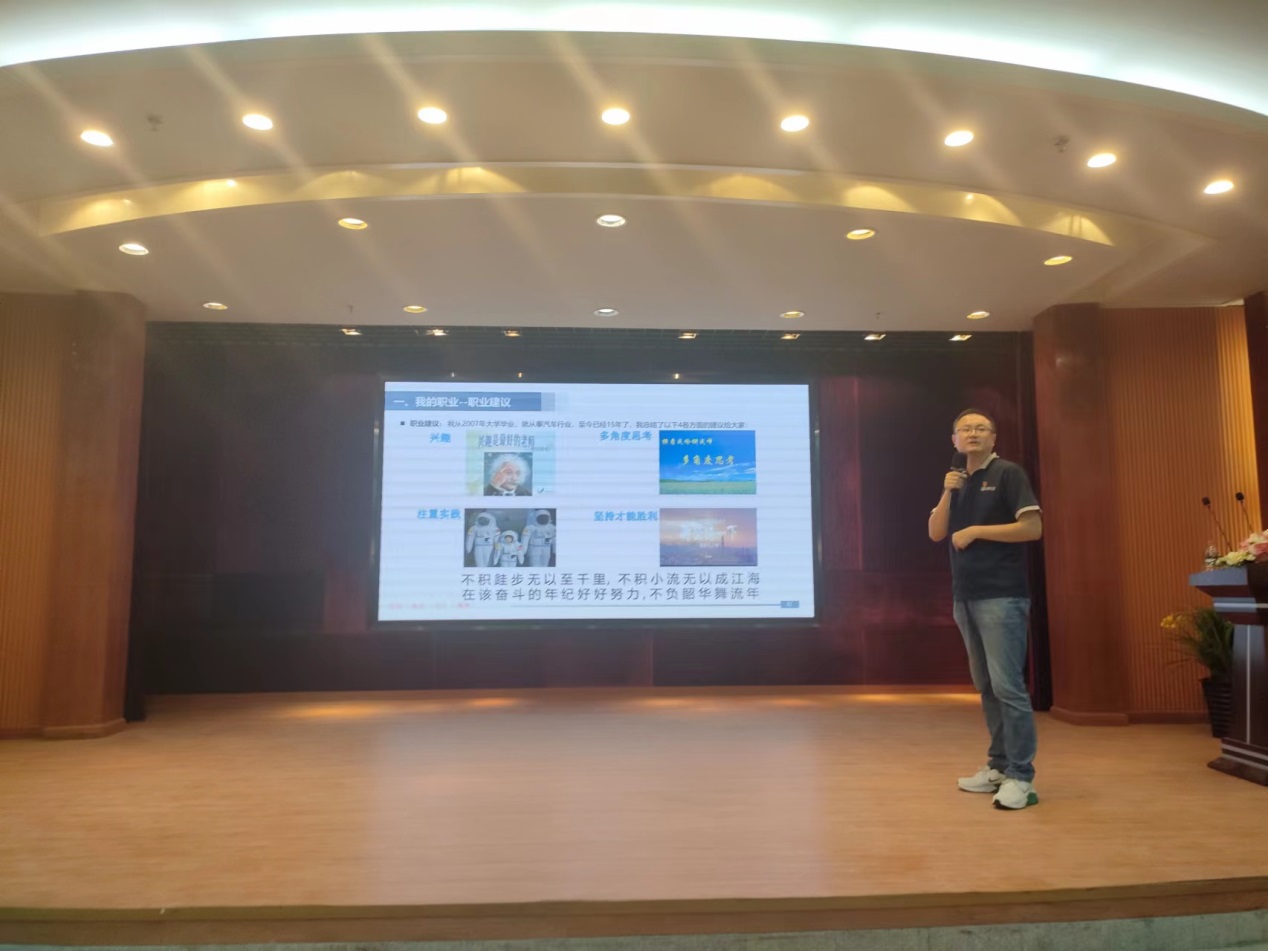 王新龍高級經理首先結合個人成長的適應期、成長期、成熟期、拓展期,給同學們提出了參加工作后每個時期的具體建議,最后他講到,自己之所以能夠取得今天的一點點成績,除了源于自己對專業(yè)的熱愛,執(zhí)著的追求和不懈的努力外,還應感謝單位領導的重視和同志們的支持和幫助,沒有單位為我提供了一個發(fā)展平臺不可能有今天的成績。鼓勵同學們在該奮斗的年紀要好好努力,積累知識和才干,提升素質和能力,不負青春韶華,畢業(yè)后進入公司要愛崗敬業(yè),不怕吃苦,腳踏實地,對待工作在多角度思考精益求精,只要堅持不懈的努力付出,就一定會成功。