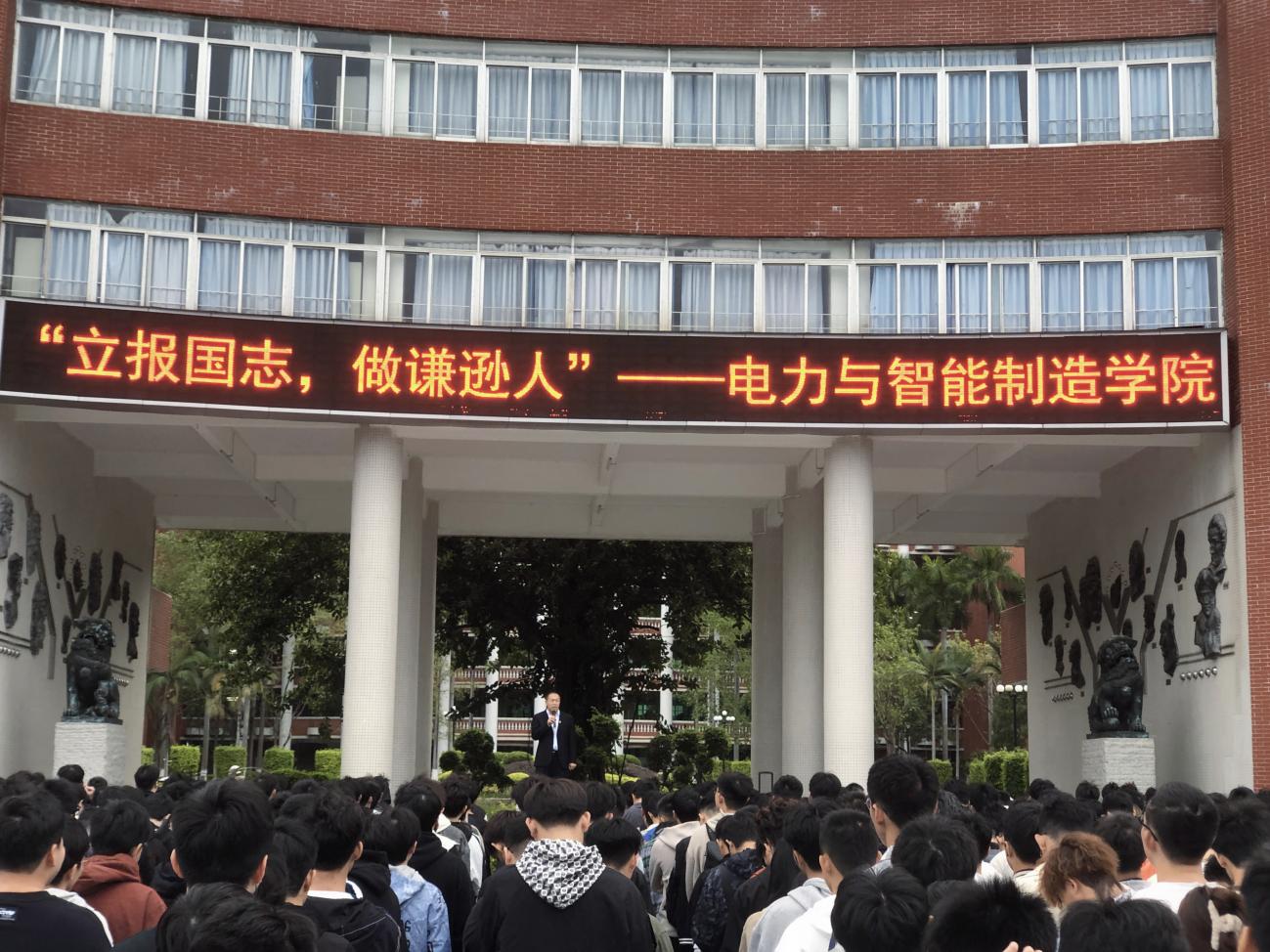 升國旗儀式結(jié)束后,電力與智能制造學(xué)院黨總支書記褚玉峰教授進行了“國旗下的講話”,題目是“立報國志,做謙遜人”。