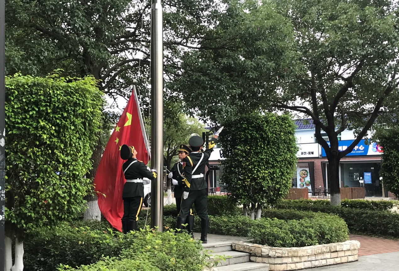 7點30分升國旗儀式準時開始,國旗護衛(wèi)隊的旗手邁著鏗鏘有力的步伐,護衛(wèi)著鮮艷的五星紅旗入場,激昂的《義勇軍進行曲》歌聲響起,全體師生肅立面向國旗致敬奏唱國歌。