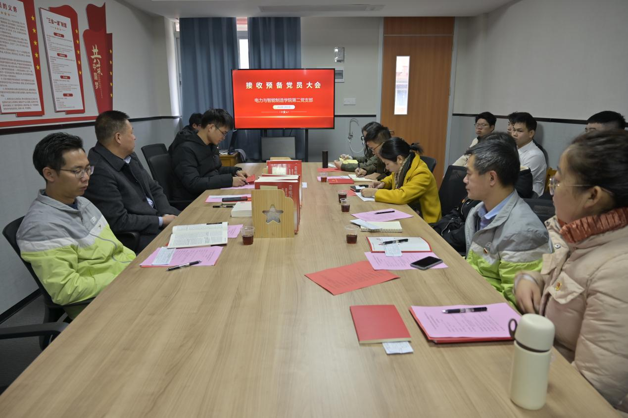 2023年12月22日下午于西一509A會(huì)議室,電力與智能制造學(xué)院第二黨支部召開(kāi)黨員大會(huì),討論接收梁楚銘、黃建銘、劉鈞、龍瑩、羅澤標(biāo)、吳俊賢、駱鑫等七名同志入黨問(wèn)題。