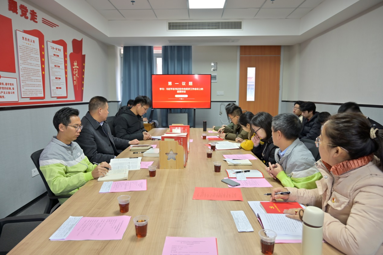 會(huì)議由學(xué)院第二黨支部書(shū)記鄭理廣主持,他首先報(bào)告了會(huì)議人員出席情況,并組織了“第一議題”活動(dòng),領(lǐng)學(xué)了《習(xí)近平在中央經(jīng)濟(jì)工作會(huì)議上的重要講話》。