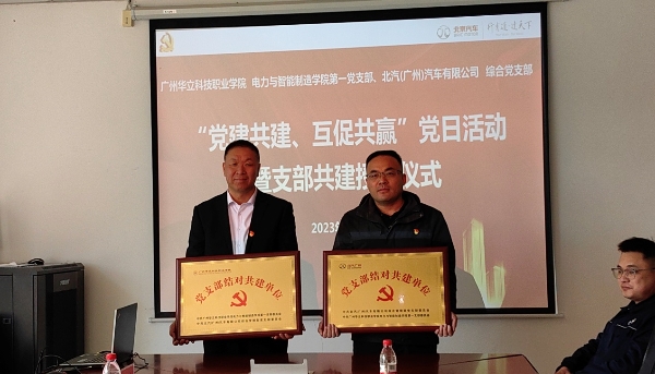 為學(xué)習(xí)貫徹黨的二十大精神,實(shí)施教育強(qiáng)國、科技強(qiáng)國、人才強(qiáng)國目標(biāo),建設(shè)學(xué)習(xí)型、服務(wù)型、創(chuàng)新型黨組織,發(fā)揮黨建在“產(chǎn)教融合、校企合作”中的引領(lǐng)作用,以教促產(chǎn)、以產(chǎn)助教,構(gòu)筑校企合作新生態(tài),凝聚黨建工作合力。電力與智能制造學(xué)院第一黨支部與我校的校企合作單位──北汽(廣州)汽車有限公司綜合管理黨支部,經(jīng)過協(xié)商決定開展校企黨支部結(jié)對共建。