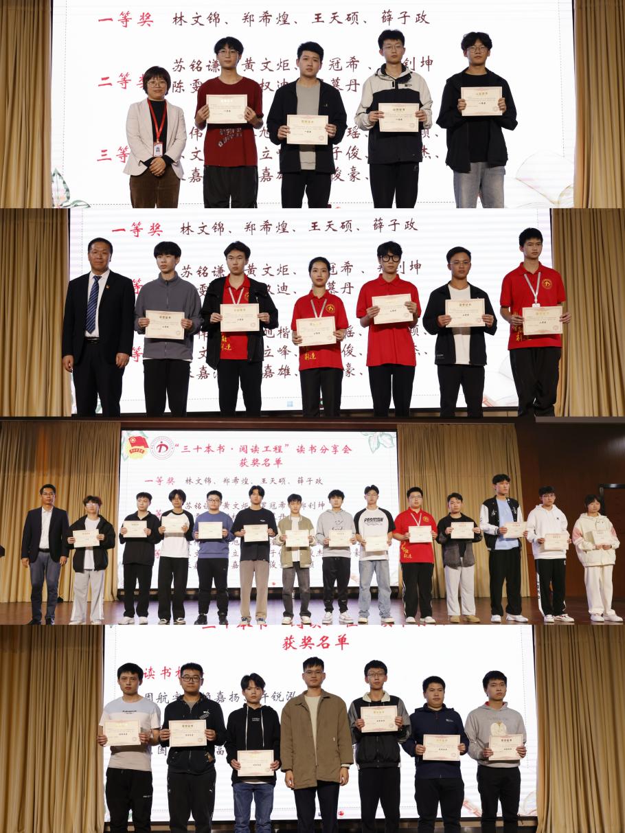 讀書分享結(jié)束后,對獲得電力與智能制造學(xué)院第一屆“三十本書?閱讀工程”讀書分享一二三等獎的同學(xué)及獲得“讀書標兵”、“讀書之星”的同學(xué)進行了頒獎。